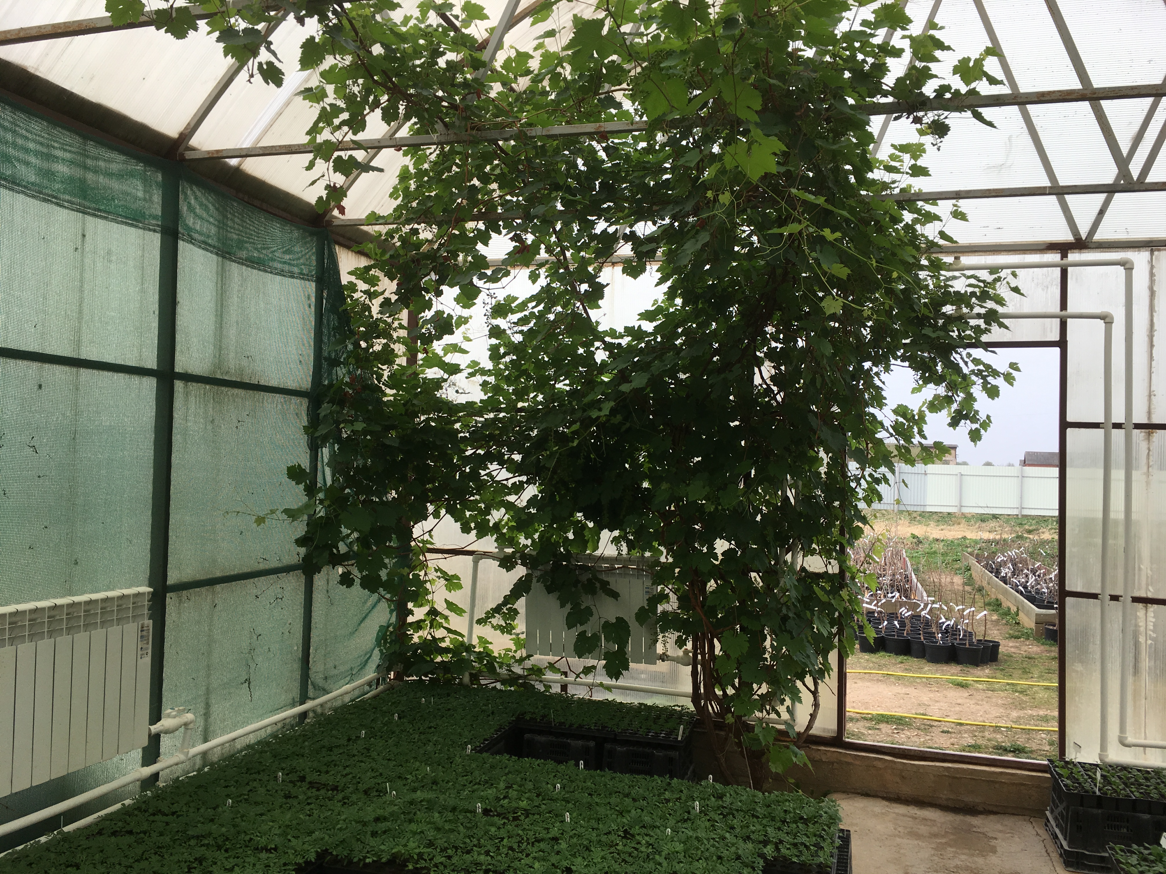 В седьмых: Интересно, что у них прямо в теплице растет виноград.