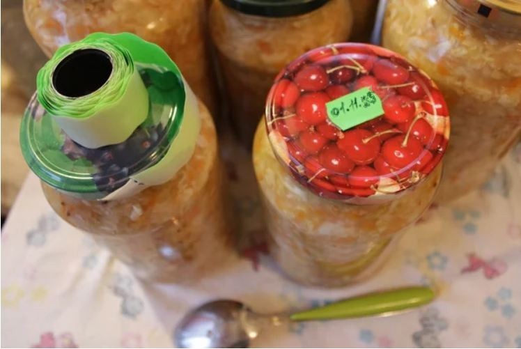 Не забудьте наклеить на банки этикетки с датой заготовки. Мы обычно квасим капусту в два захода, поэтому даты помогают ничего не перепутать.