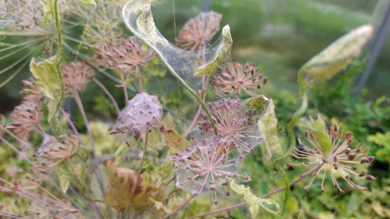 Паутинный клещ на зонтике укропа (из старого архива автора)