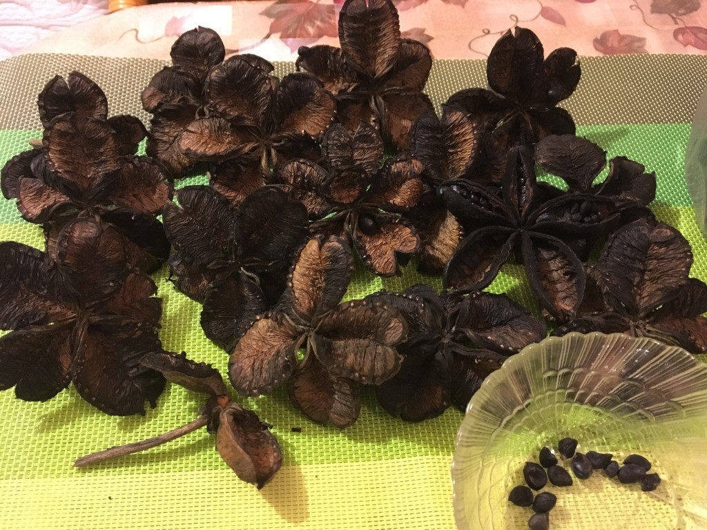 Семена с трех разных кустов древовидных пионовВнутри коробочки ребристые, а с изнаночной стороны — словно бархатные, чуть шершавые. Такой невероятно приятный природный материал.