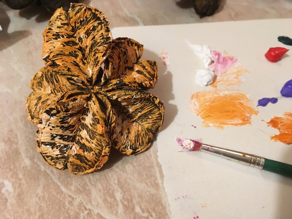 Чтобы откусить стебелек, мне понадобились маленькие кусачки, поскольку засохшие стебли становятся прочными как дерево. Ведь и пионы древовидные…Мне хотелось сохранить все трещинки и природную красоту. Все-таки это природный материал, как и шишки.