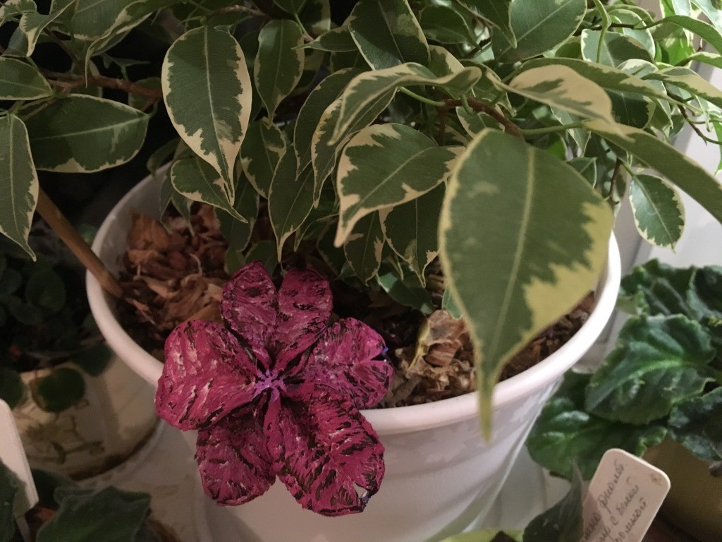 Это может стать дополнительным элементом декора цветочного горшка с комнатным цветкомСейчас даже нет смысла отвечать на небольшую критику. После первого упоминания о таком использовании пионов, кому-то показалось, что я покрасила неаккуратно — есть темные места.