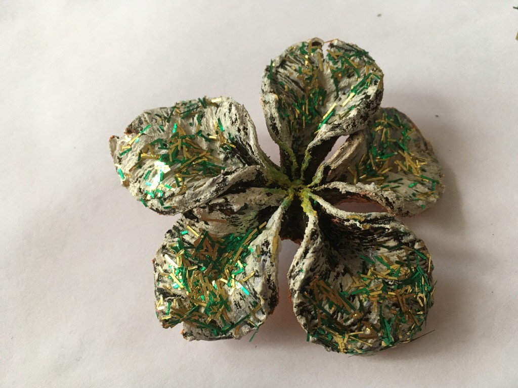 Покрытые лаком цветы я высушила на большом листе бумаги… А потом задумалась о том, как их повесить на елку.Сначала хотела откусить кусачками стебельки и сделать в лепестках дырочку при помощи нагретой отвертки.