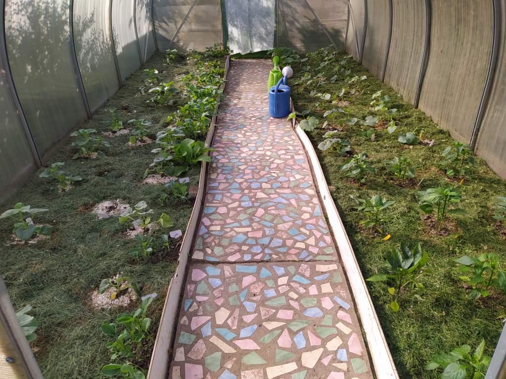 В этой теплице дорожка и грядки из пластиковых панелей служат уже 19 лет. Теплицу поставили в 2006-м.