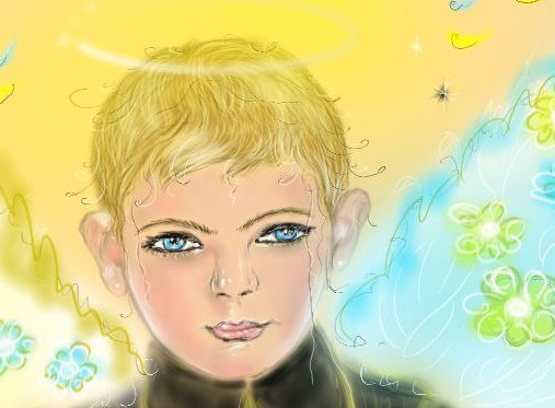 Для этого ангела моделью послужил реальный мальчишка с голубыми глазами. Он учится в 3-м классе, занимается английским языком, гимнастикой и самбо. Интересная особенность — он косолапый как медведь и очень любит все вкусное.