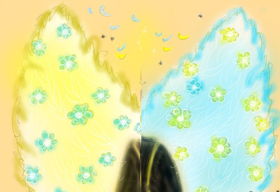 Я уже как-то писала, что у меня портреты людей получаются какие-то странные. Рука так и тянется пририсовать к человеку крылья… Сама не понимаю почему, но это какая-то навязчивая мания. С моей стороны.