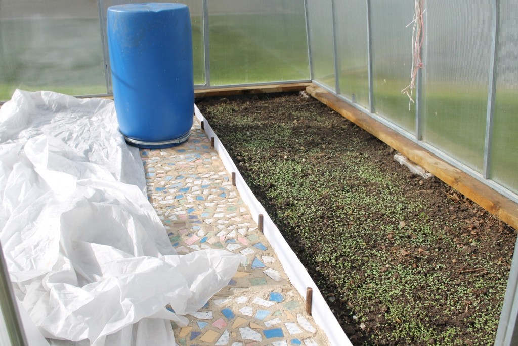 В теплице всходит горчица и туда постепенно переносим пустые бочки, которые переворачиваем дном к верху…