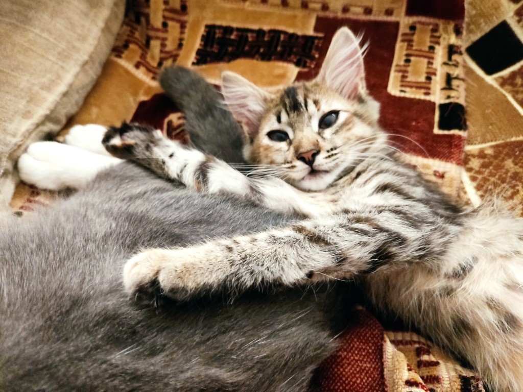 Сначала она от всех пряталась за шкафом, но потом быстро со всеми подружилась… Особенно с рыжим Барсиком, который был ей ближе всех по возрасту.