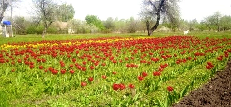 А вот это интересное фото прислал читатель Алексей Лыков. Так он выращивает красные и желтые тюльпаны на поле.