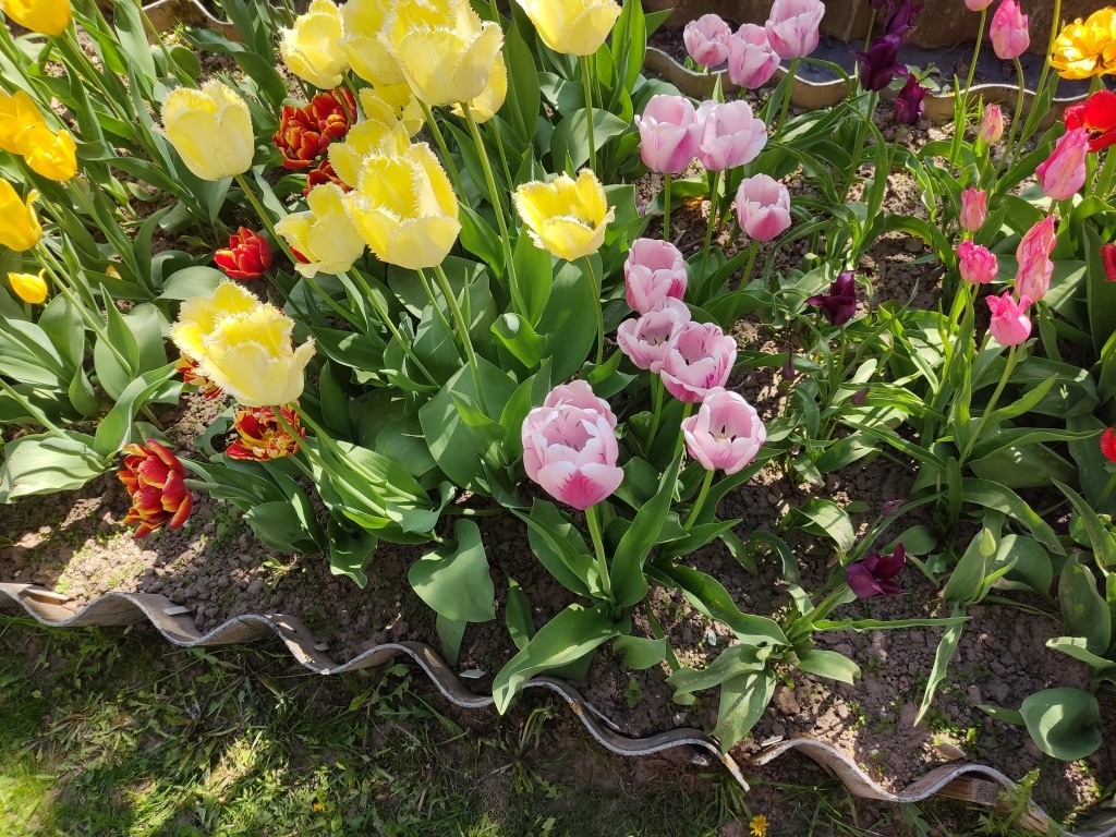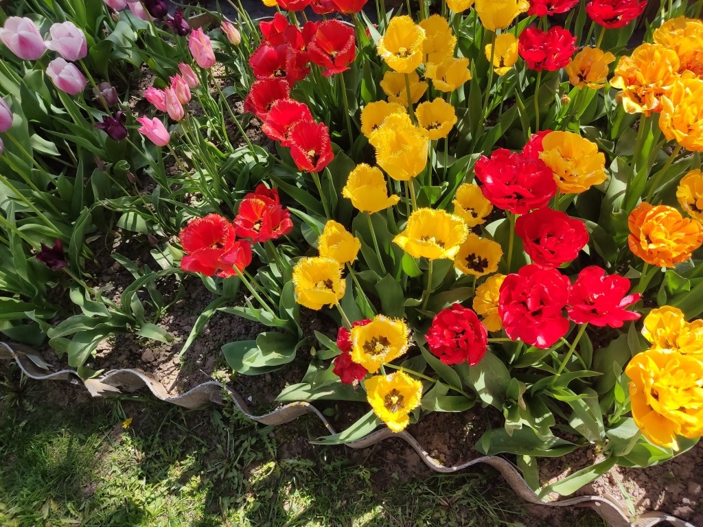 Но покажу вам пару примеров чужих тюльпанов. На двух фото ниже — это грядка с тюльпанами моей золовки.