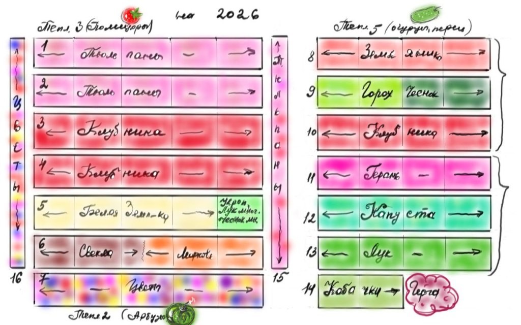 Посмотрите, тут нарисованы схематично 16 грядок открытого грунта.