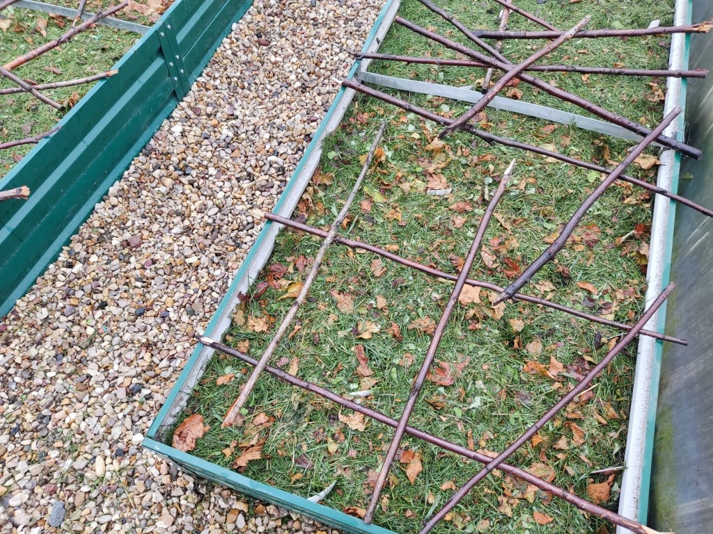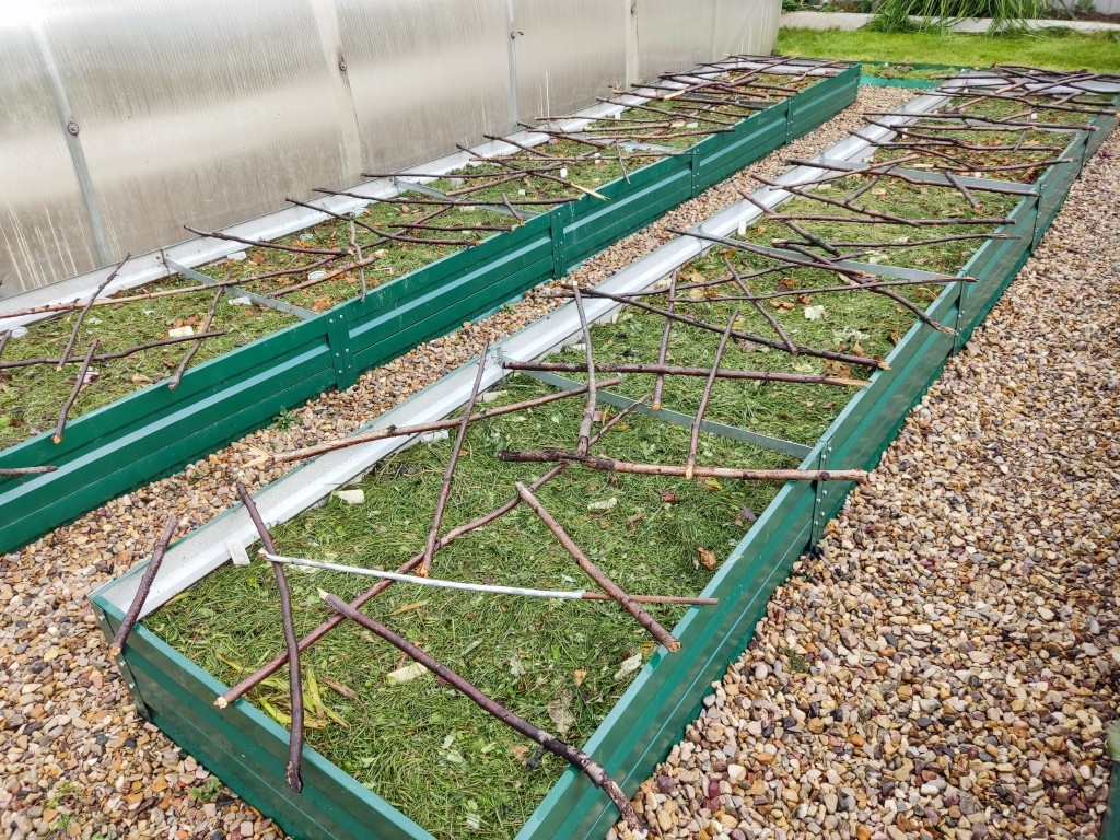 И на этот раз у меня все луковицы крупные. Тут должно быть очень красиво весной. Пока засыпала мульчой из зеленой травы и листьев. А чтобы коты не нарушили мою будущую красоту, пока положила палки сверху.