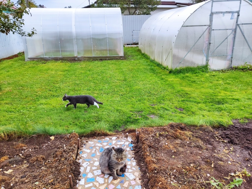 Васька демонстрирует сравнительные размеры дорожки в теплице…