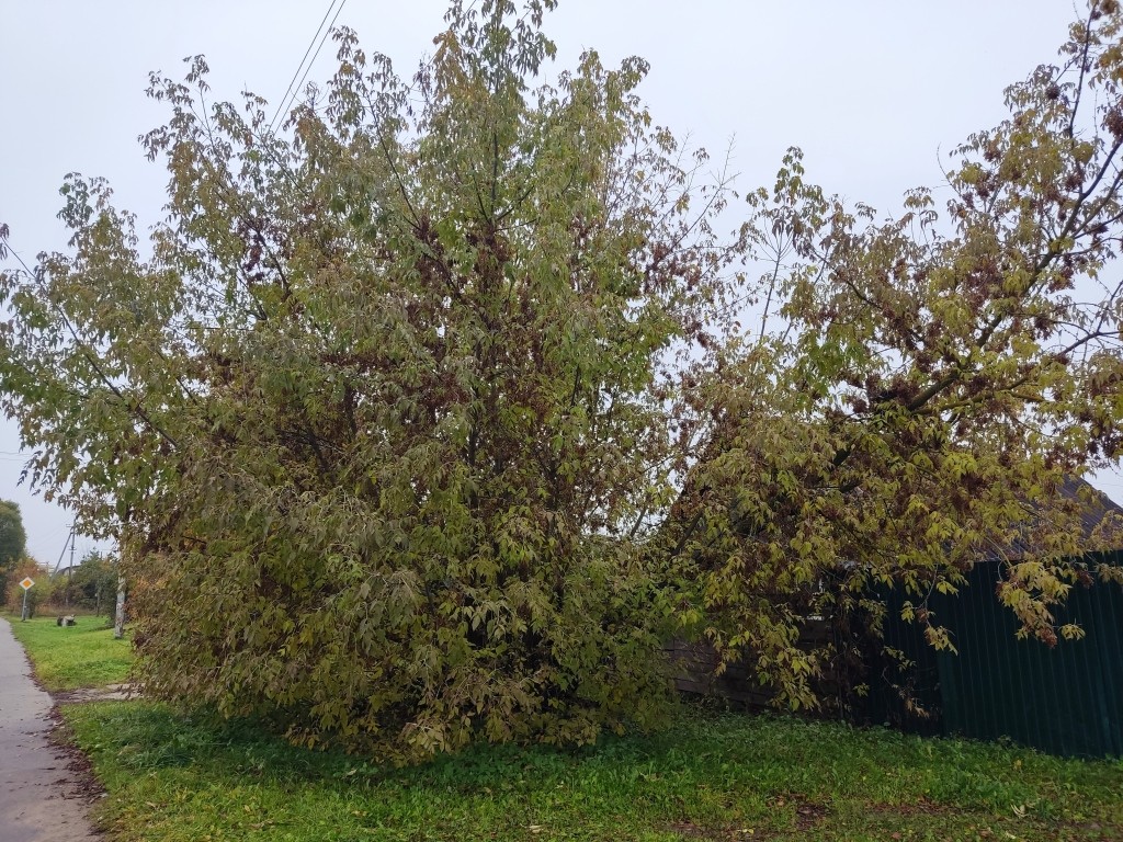 Тут лет десять назад росл огромный высоченный ясень. Хозяева его спилили, но он дал много побегов от корня. Превратился в кустарник.