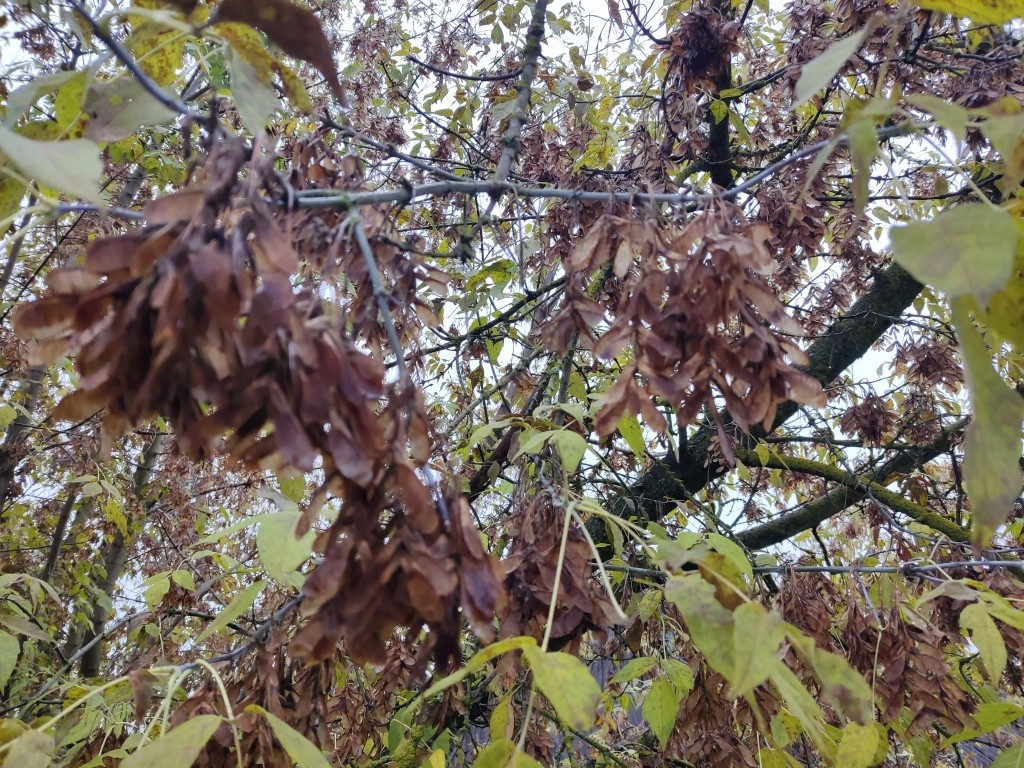 Было дерево, а стал кустарник со множеством стволов. И теперь каждую осень и зиму по всей округе разлетаются семена этого ясеня.