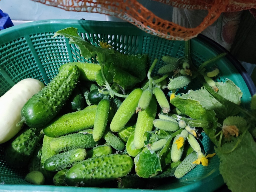 Собираю последние огурцы и помидоры (они на фото ниже)…