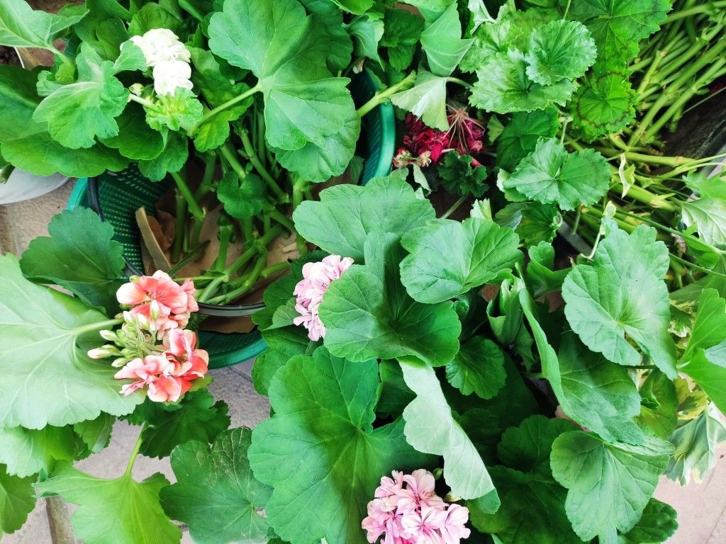 Нарезаю черенки с пеларгоний, которые на лето высаживала в сад…