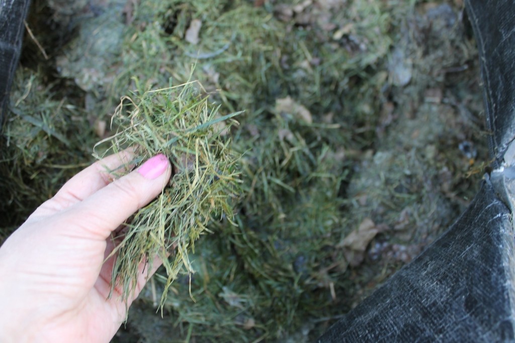 Можно совместить стрижку газона со сбором опавших листьев, Эта трава (смотрите фото ниже) может храниться до весны…