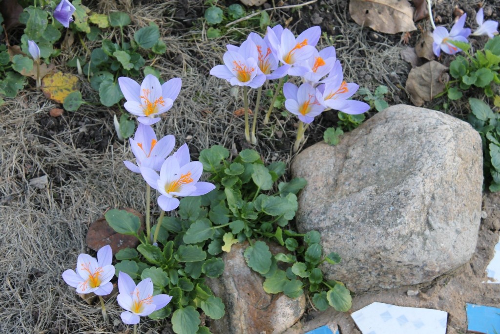 Осенние крокусы — можно пересадить только осенью. Так их видно. А весной много листьев и трудно понять, что это не весенние крокусы…