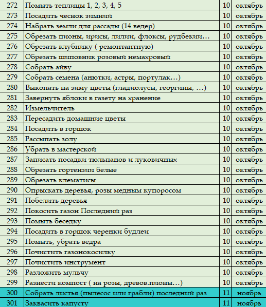 Отрывок из моего ежегодного списка дел на октябрь… Составила себе такую шпаргалку и потом отмечаю, что уже сделано… Смотрите фото ниже, где более детально…
