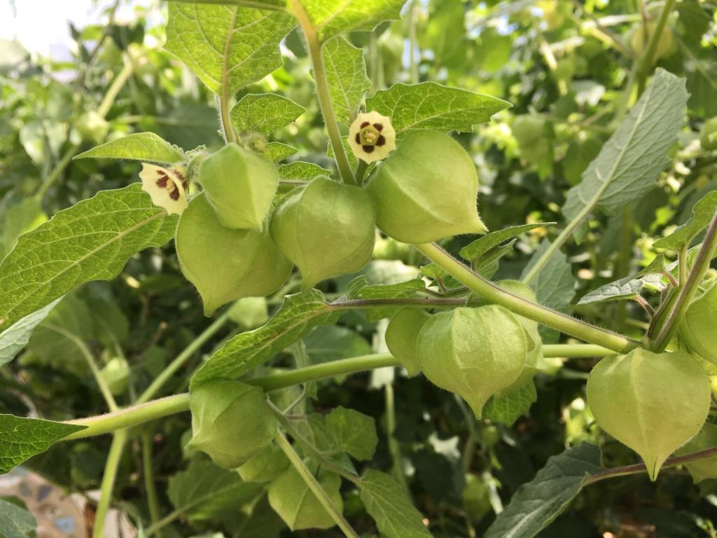 Цветочки у ягодного вида физалиса достаточно скромные, но плодовых «фонариков» много.