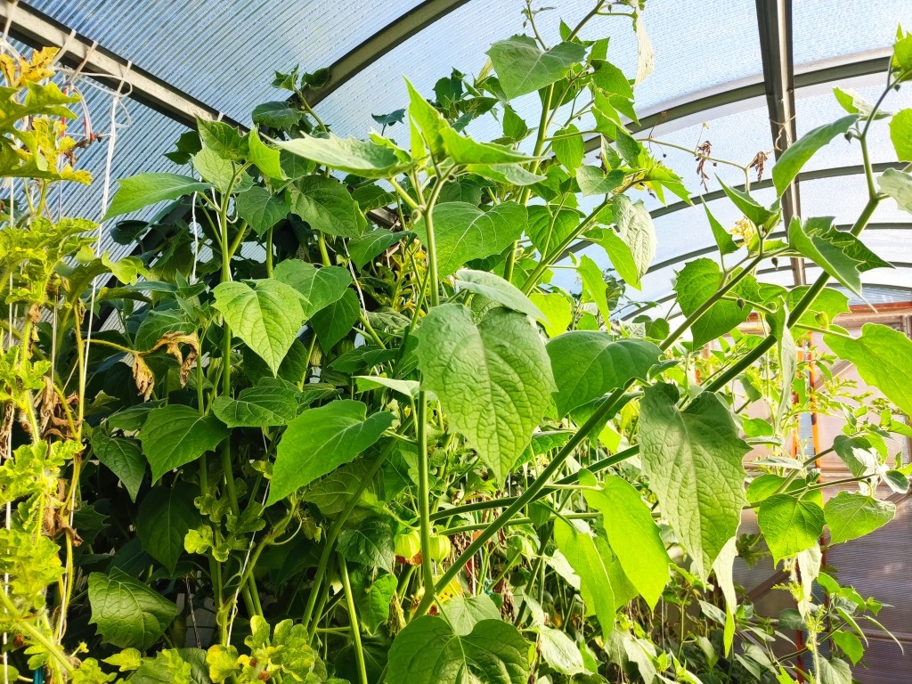 Как только физалис начинает массово созревать и осыпаться — грядку я эту в теплице больше не поливаю…