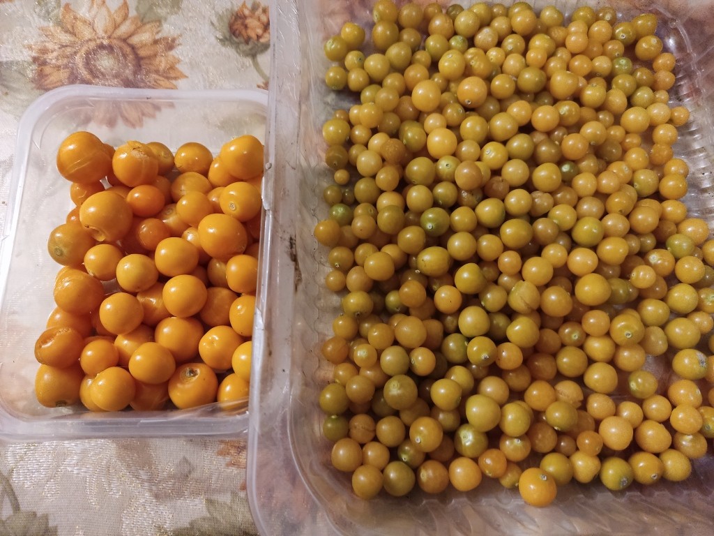 У нас урожай физалиса обычно измеряется ведрами. И тут мой любимый ягодный физалис двух сортов: Сахарный изюмчик и Ананасный…