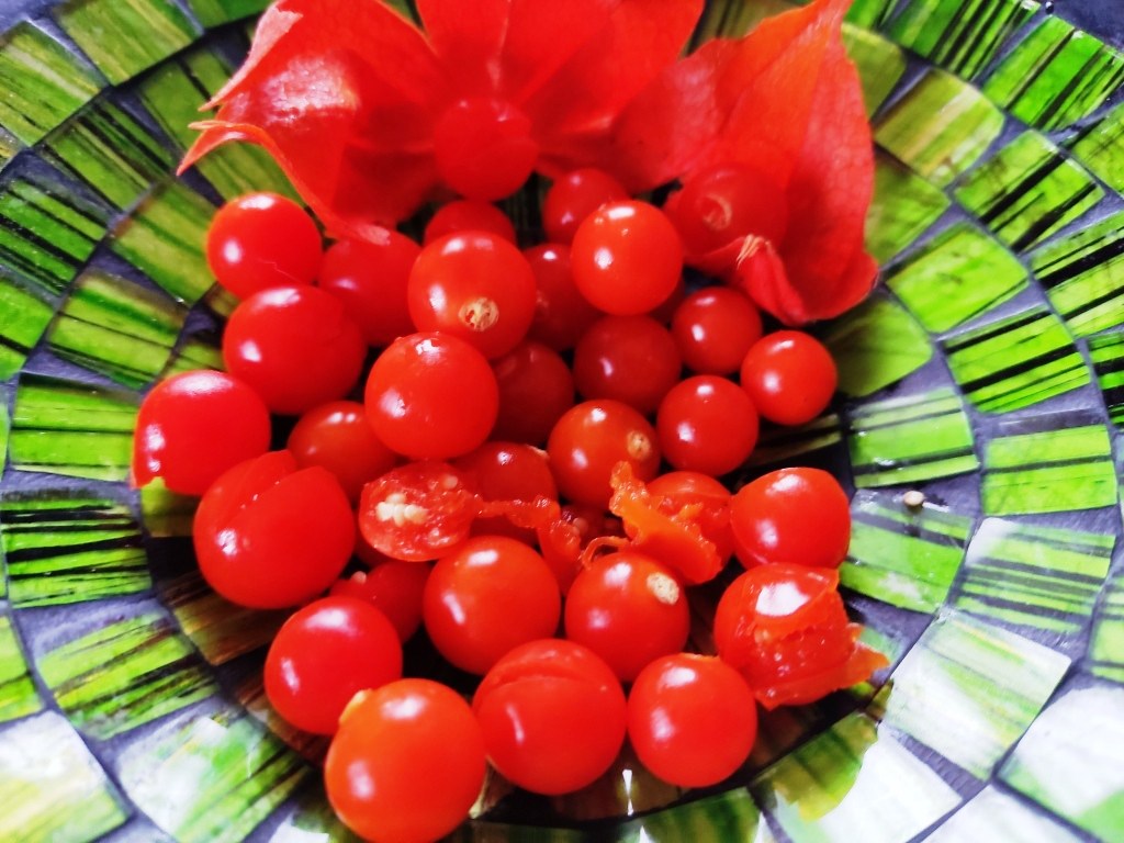 Собрала фонарики с этих веток и почистила ягоды… Они оказались тоже красивые до жути…