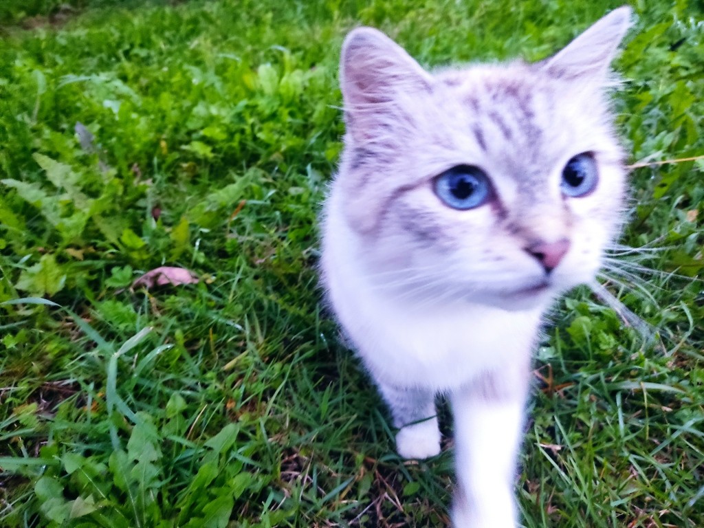 Просто иногда белая кошка гуляет одна. Иногда со своим котенком. Хотя я по старой памяти называю эту взрослую 5-ти летнюю кошку котенком. Она давно выросла…