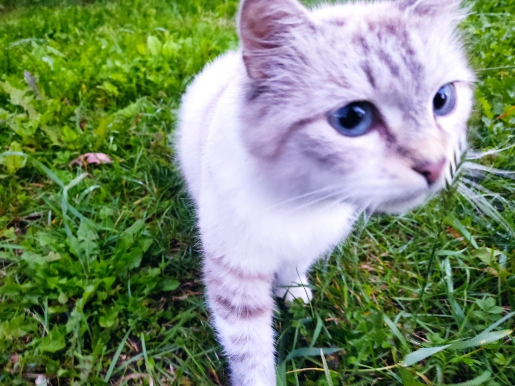 Однажды я пошла гулять и белая кошка мне показала своего подросшего котенка…