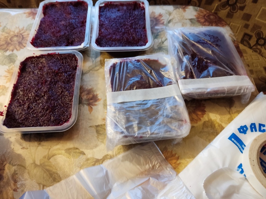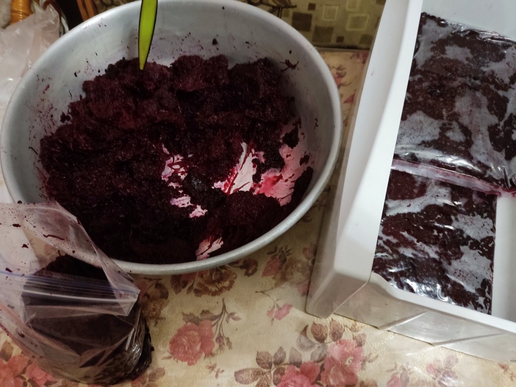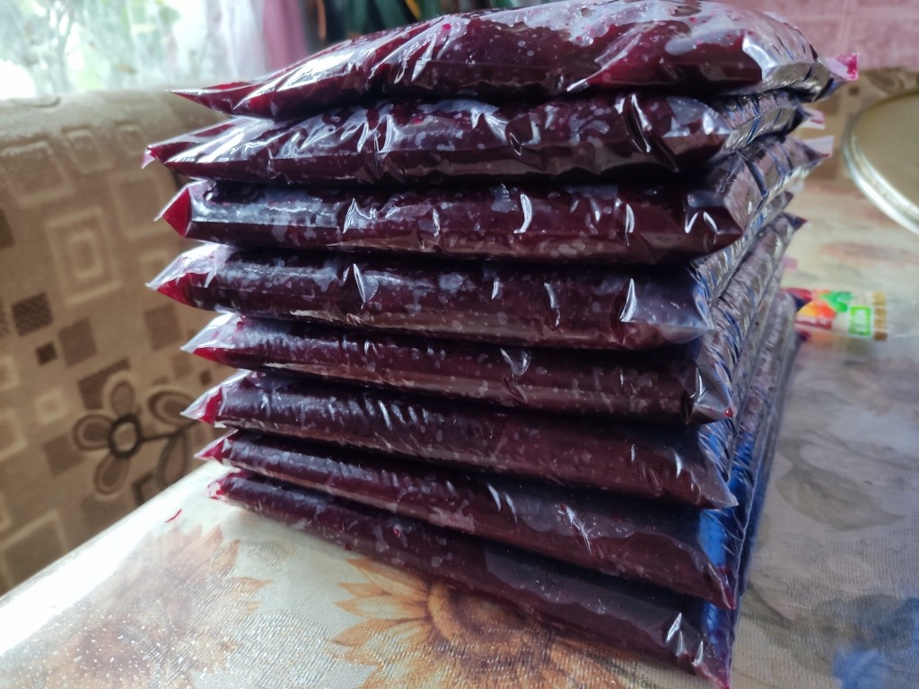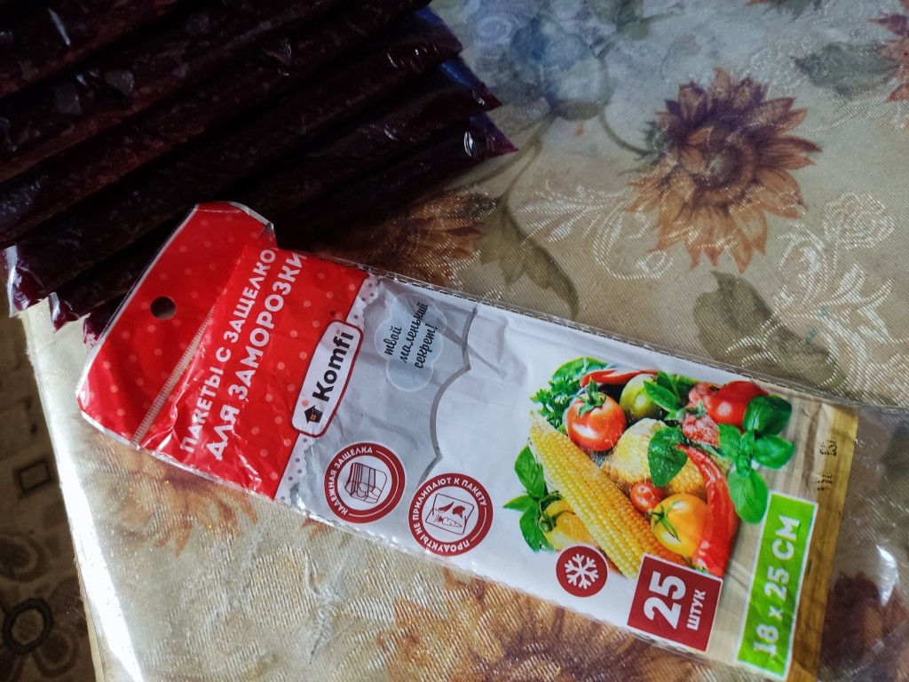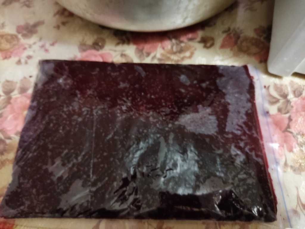 Так что на этот раз я заморозила для себя фиолетовую в маленьких пакетиках (на одну порцию). А оранжевую мы заморозили как обычно.