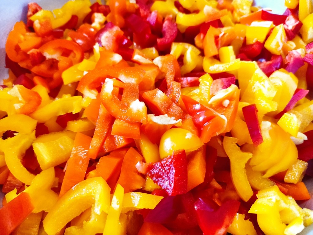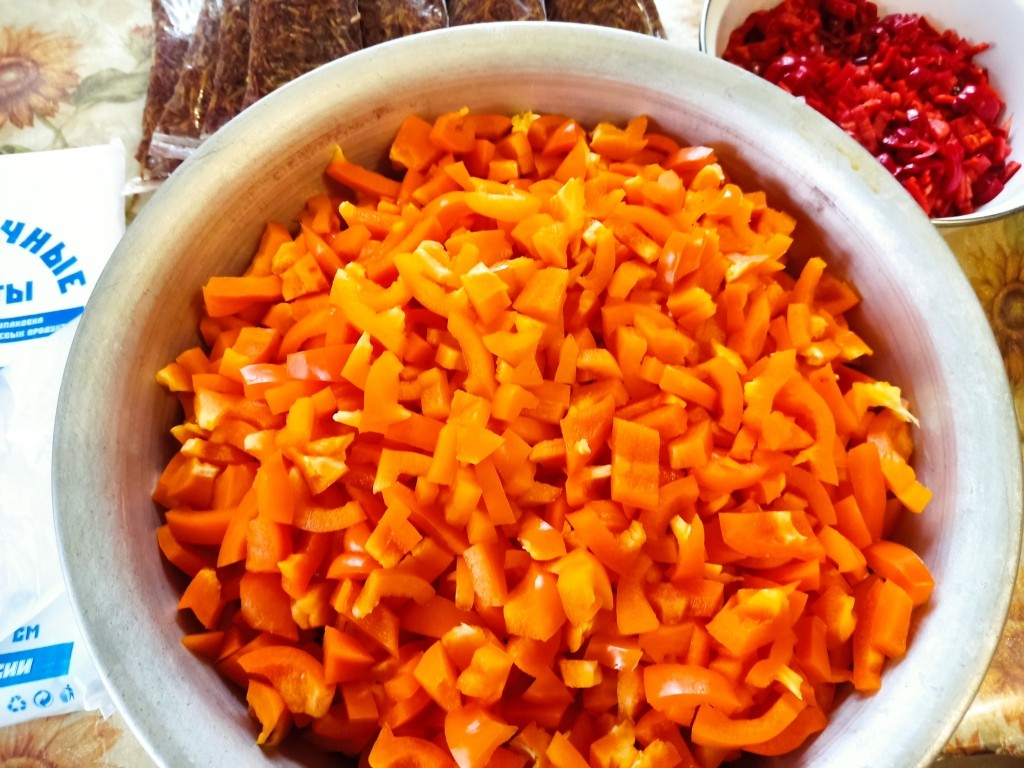 Н вмешался муж. Он лично порезал весь перец вперемешку. И сказал, что так интереснее.