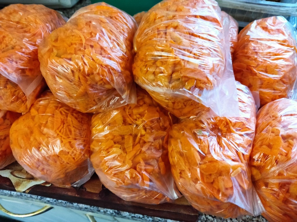 В прошлый раз заморозили много моркови, но те запасы закончились быстро. Просто потому, что я каждый (почти) день готова есть свежую морковь. Добавить туда ложечку сметаны — отличный перекус.