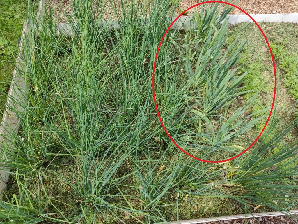 Вот этот чеснок между многолетним луком и укропом, я обвела его красным:
