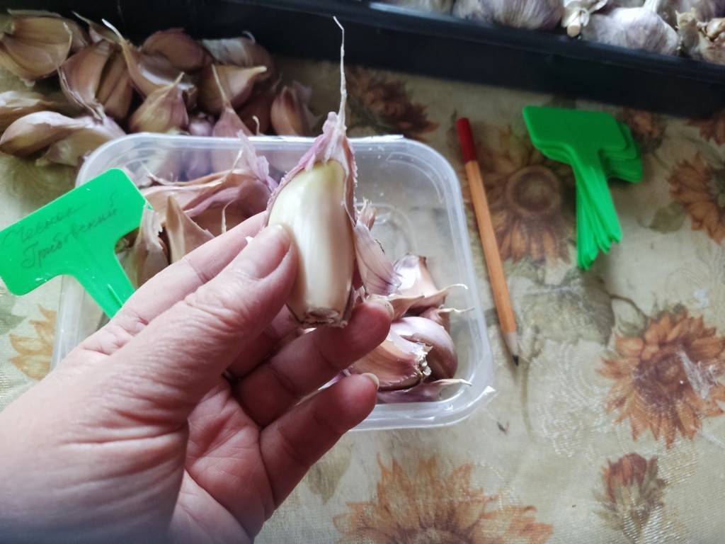 Кстати говоря, посадку чеснока в этом году я проводила 23 октября. Хотя можно было бы и позднее, главное правило для Тверской области — успеть до морозов.