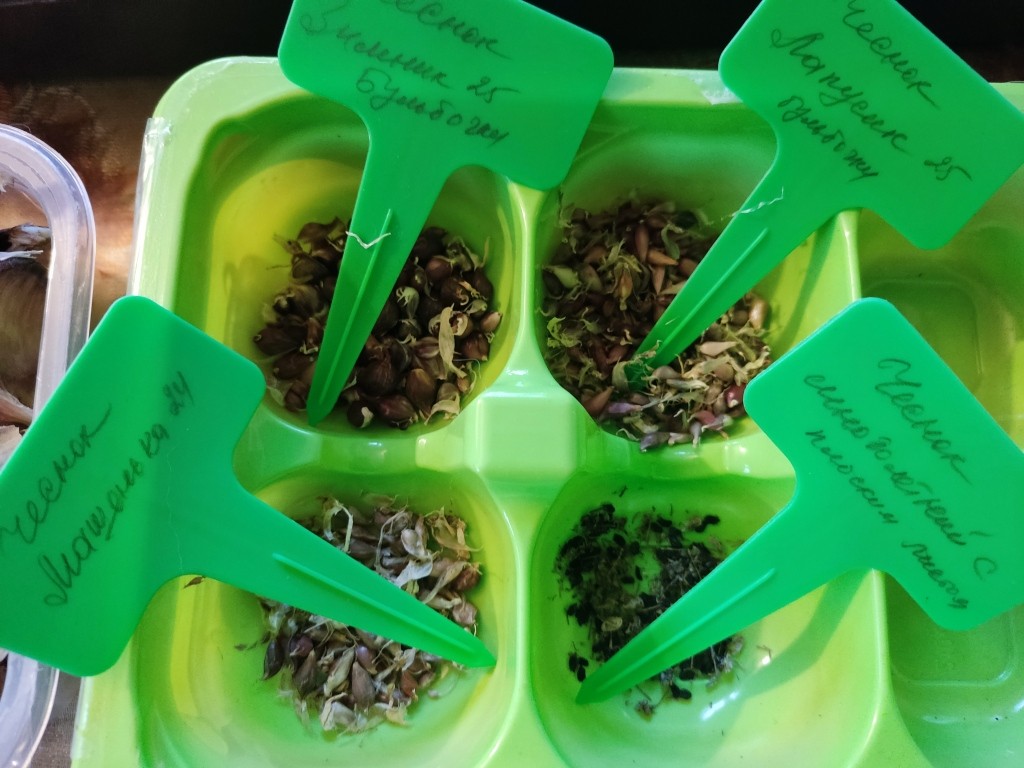 И в прошлом сезоне я оставила несколько стрелок на семена. И вот сейчас посадила бульбочки.