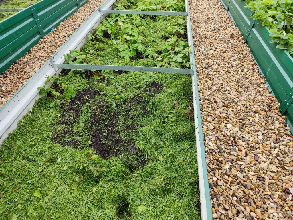 Следы их «прогулок» у меня видны на грядках. Вот например: