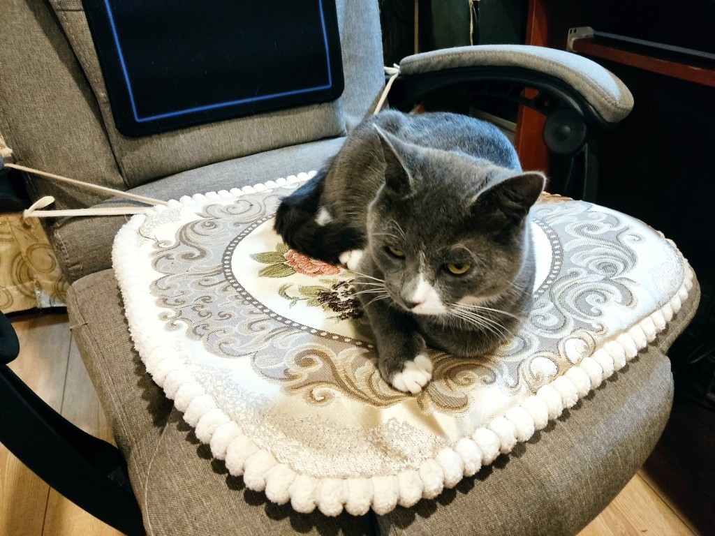 У нас три кота. Вот это Тихон, он тут сидит в моем кресле: