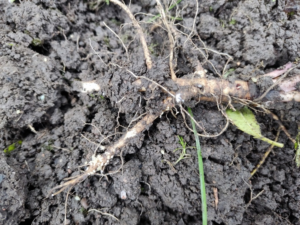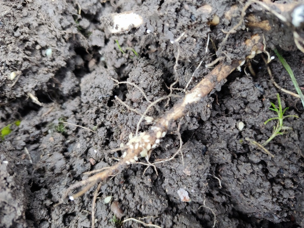 Ещё одна старая тема про разные виды тли. Бывает реально корневая тля. Вот одуванчик, на корнях у него белая тля: