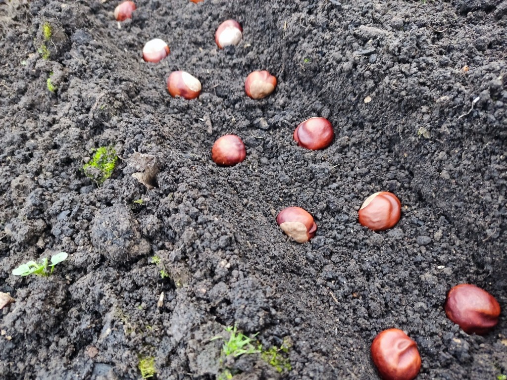 Я посадила примерно 2 десятка каштанов. В надежде, что вырастет хотя бы один. И сделала это просто из интереса: как они растут?