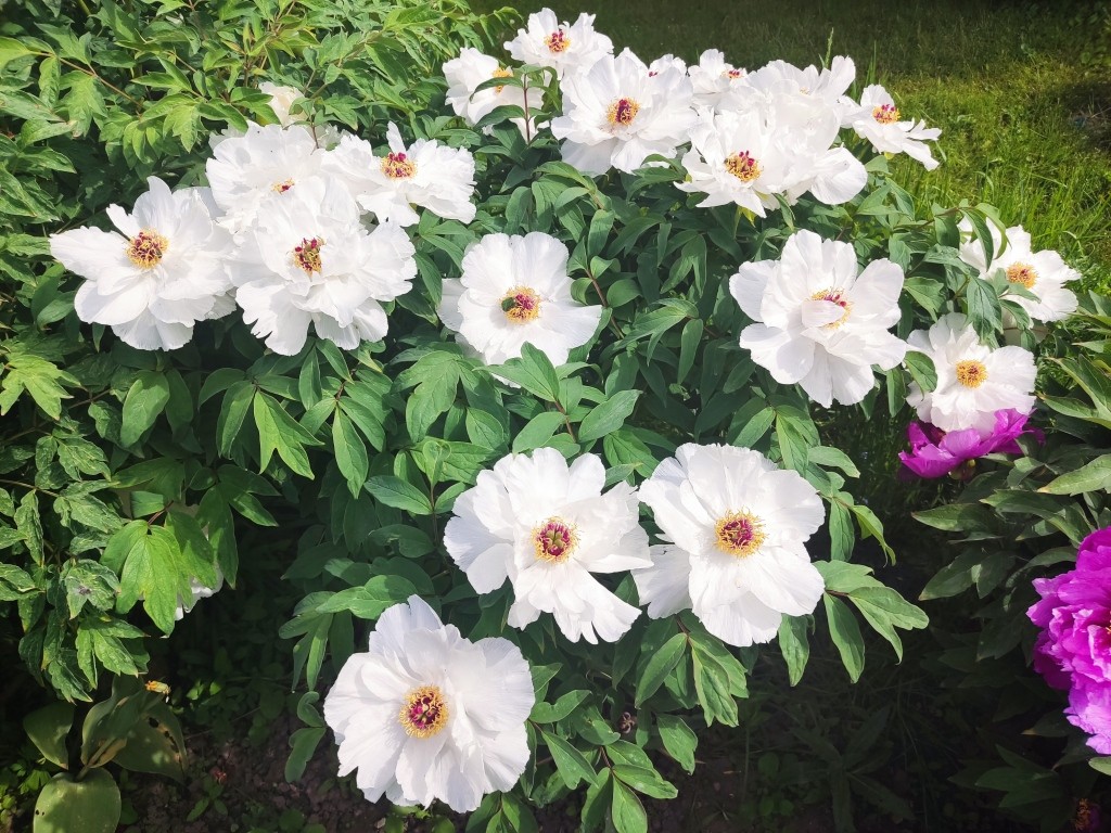 Четвертый сорт называется Белый Нефрит. И это самый высокий пион в моем саду. Его высота достигает почти 2-х метров. И он действительно красиво и обильно цветет.