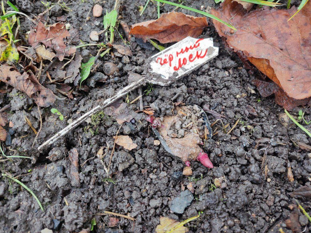 Но в начале ноября оказалось, что пион отрастил новый побег с пучком листьев. Вот фото: