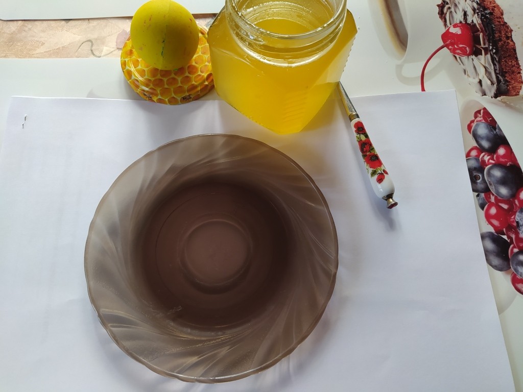 Нужно было взять каплю мёда и капнуть в тарелку с водой.