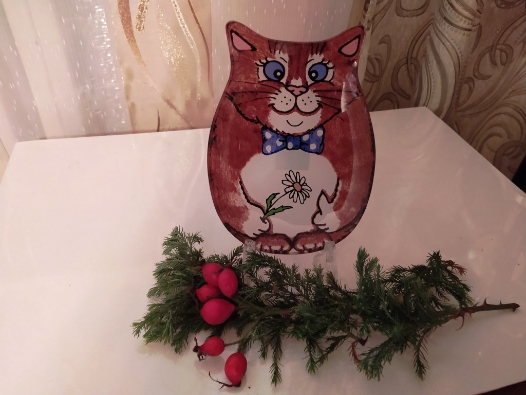 Дело в том, что в числе подаренных тарелок была одна в форме котика, вот она: