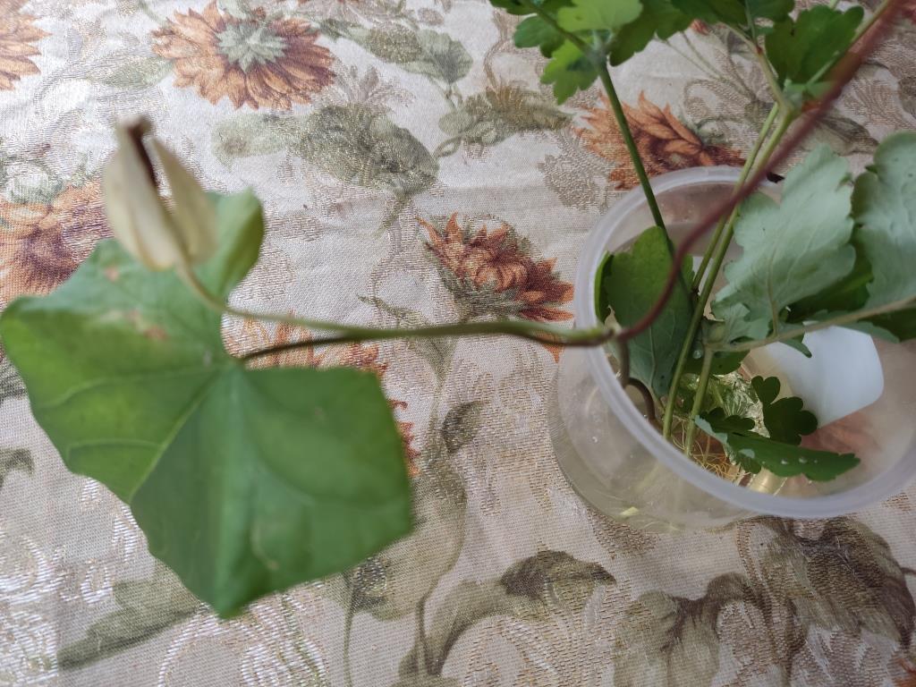 Оказалось, что я принесла с чистотелом еще и вьюнок.Небольшой кусочек стебля вьюнка случайно оказался вместе с чистотелом в моей баночке с водой. И он пустил корни.