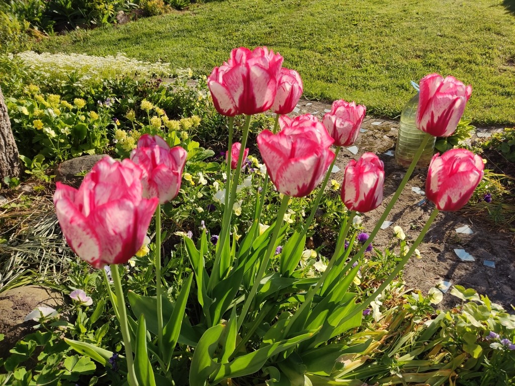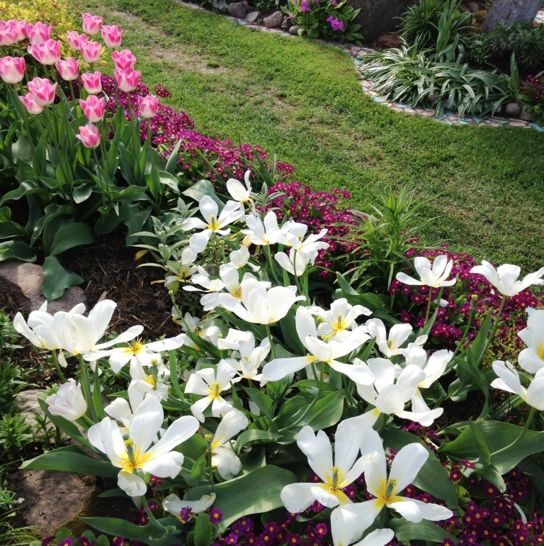 Было бы много места, я бы сажала тюльпаны островками по 50 штук… Тут сорта Полька и Пуриссимо…
