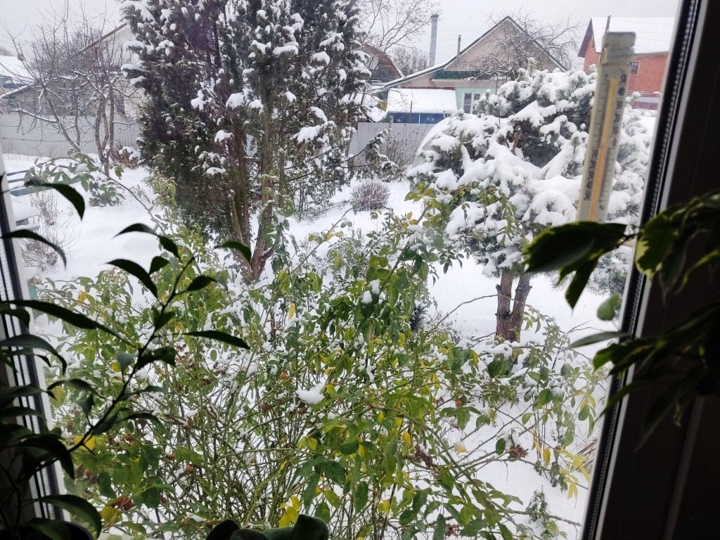 Сегодня за окном выпал первый солидный снег. На градуснике +1°, но снег пока не тает…