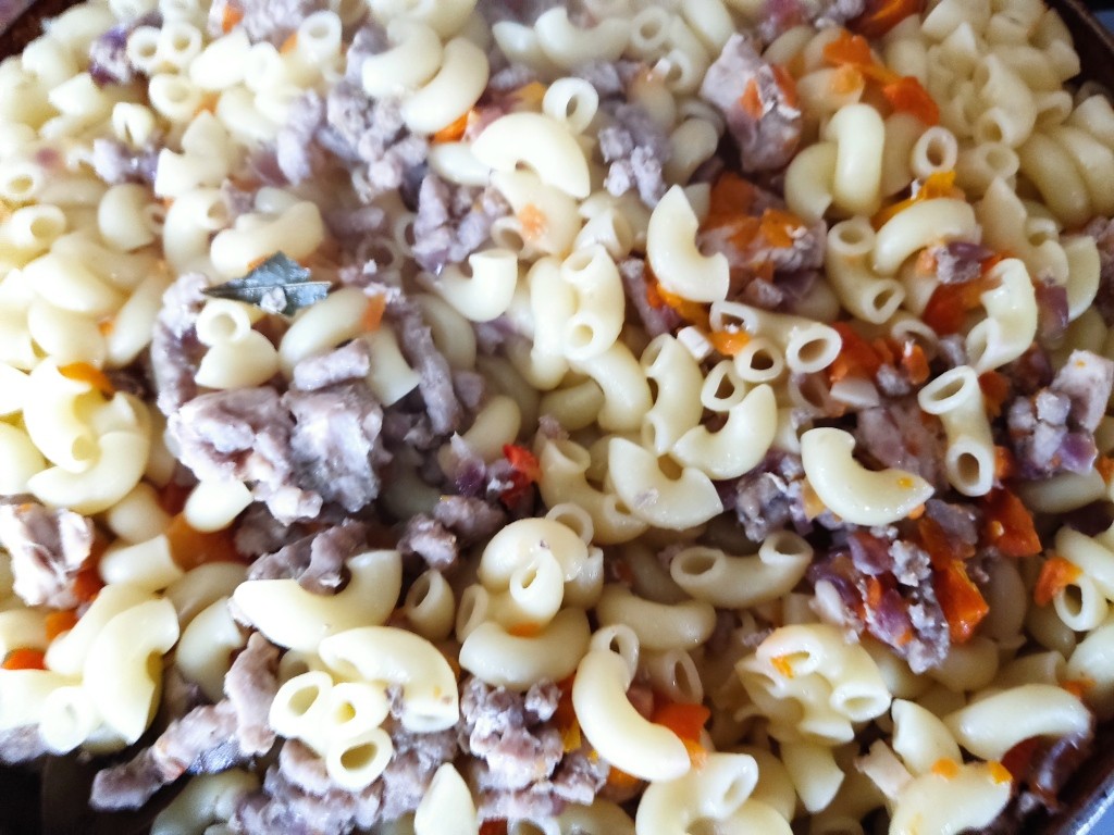 4. На 4-ой конфорке готовит макароны с фаршем…