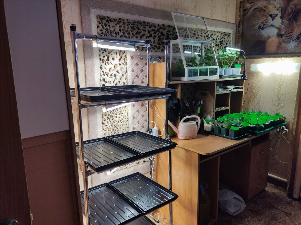Но я напишу про стеллажи ещё: и сколько денег за свет прибавится, и что на полочках поставлю… Но теперь скоро буду сеять цветы. В декабре. А не как прежде в марте: эустому, пульсатиллу, пенстемон, цинерарию, и так далее… Не пропустите.