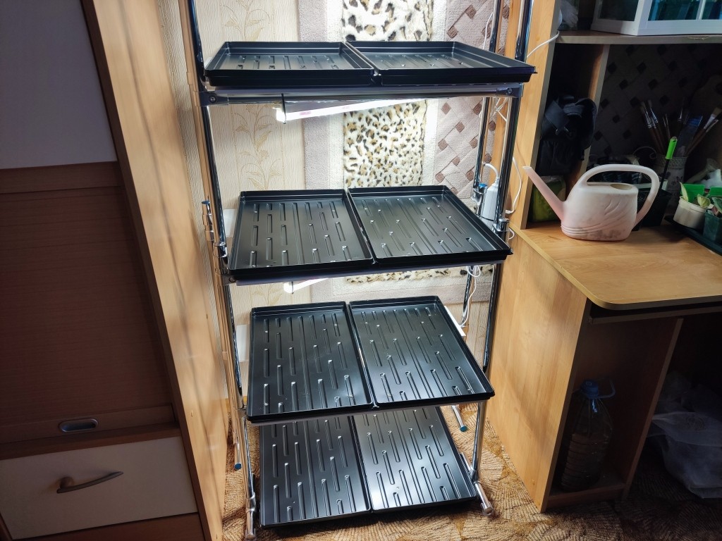Но пока я возмущалась, муж заказал отдельно 10 поддонов, которые подходили по размеру, если их поставить по 2 штуки на полку.